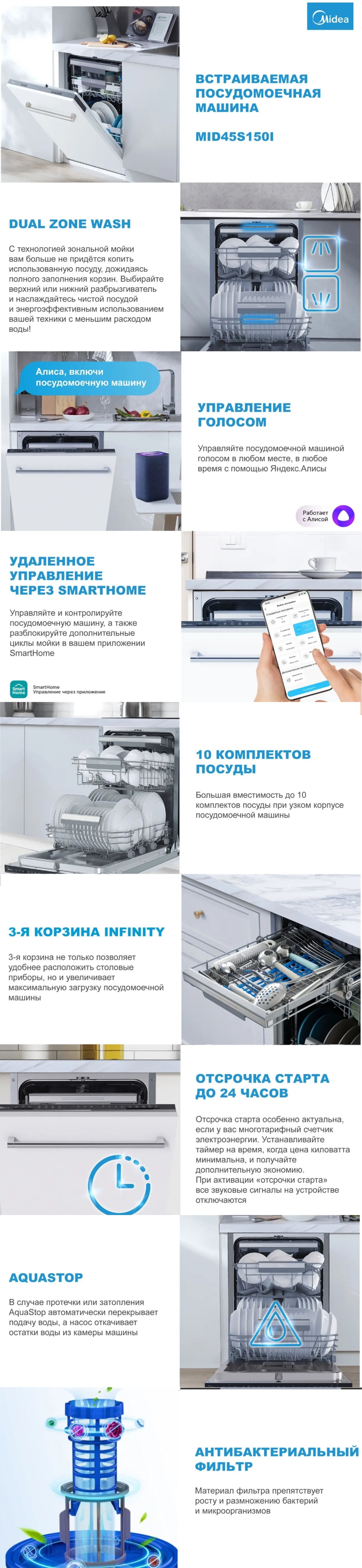 Посудомоечная машина Midea MID45S150i 2000Вт узкая
