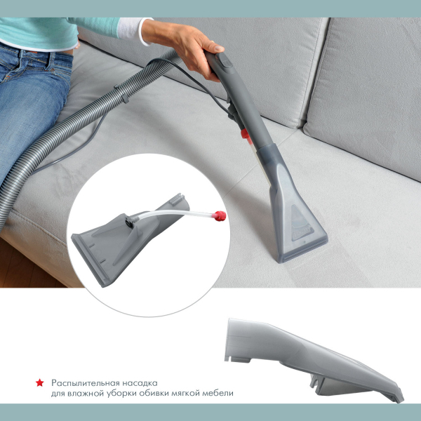Allergy&Family может качественно и без разводов вымыть пол, почистить ковры и обивку мягкой мебели, а также отмыть пятна. Пылесос одновременно моет и просушивает поверхность, оставляя ее практически сухой.
