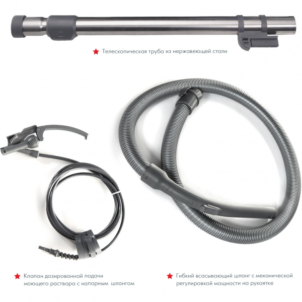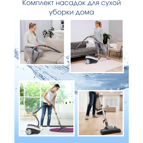 Оптимальный комплект насадок для уборки ковров, водостойких полов и мебели: