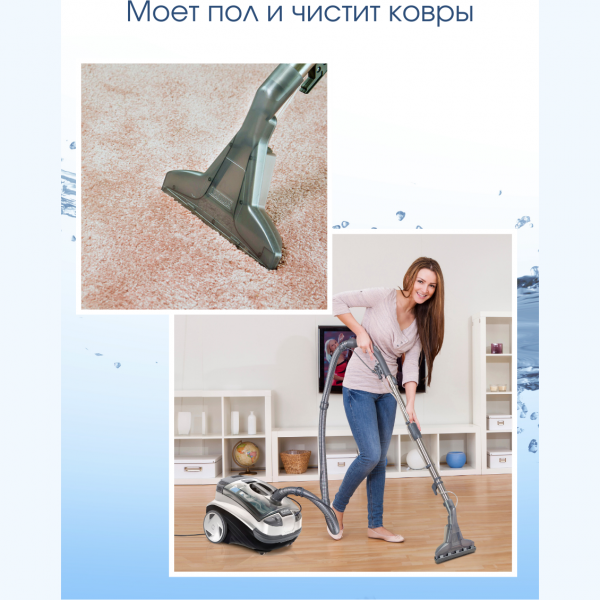 В режиме влажной уборки Aquatic PANDA отлично справляется с мойкой ковров, твердых влагостойких полов, мягкой мебели. Он чистит ковры на всю глубину и удаляет грязь и пятна. После чистки пылесосом ворс распрямляется и свежеет, и ковры выглядят ярче и привлекательнее. Кроме того, Aquatic PANDA быстро, качественно и без разводов моет твердые покрытия. После влажной уборки все поверхности чистые и сверкают.