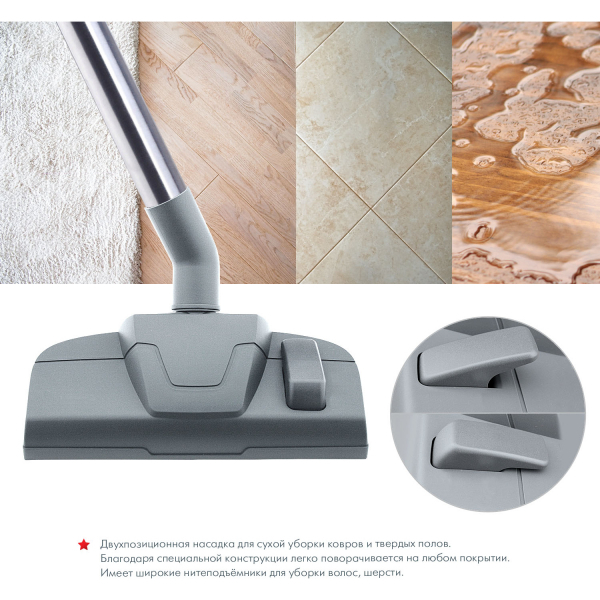 - насадка для чистки ковров и полов с большой удобной кнопкой переключения ногой