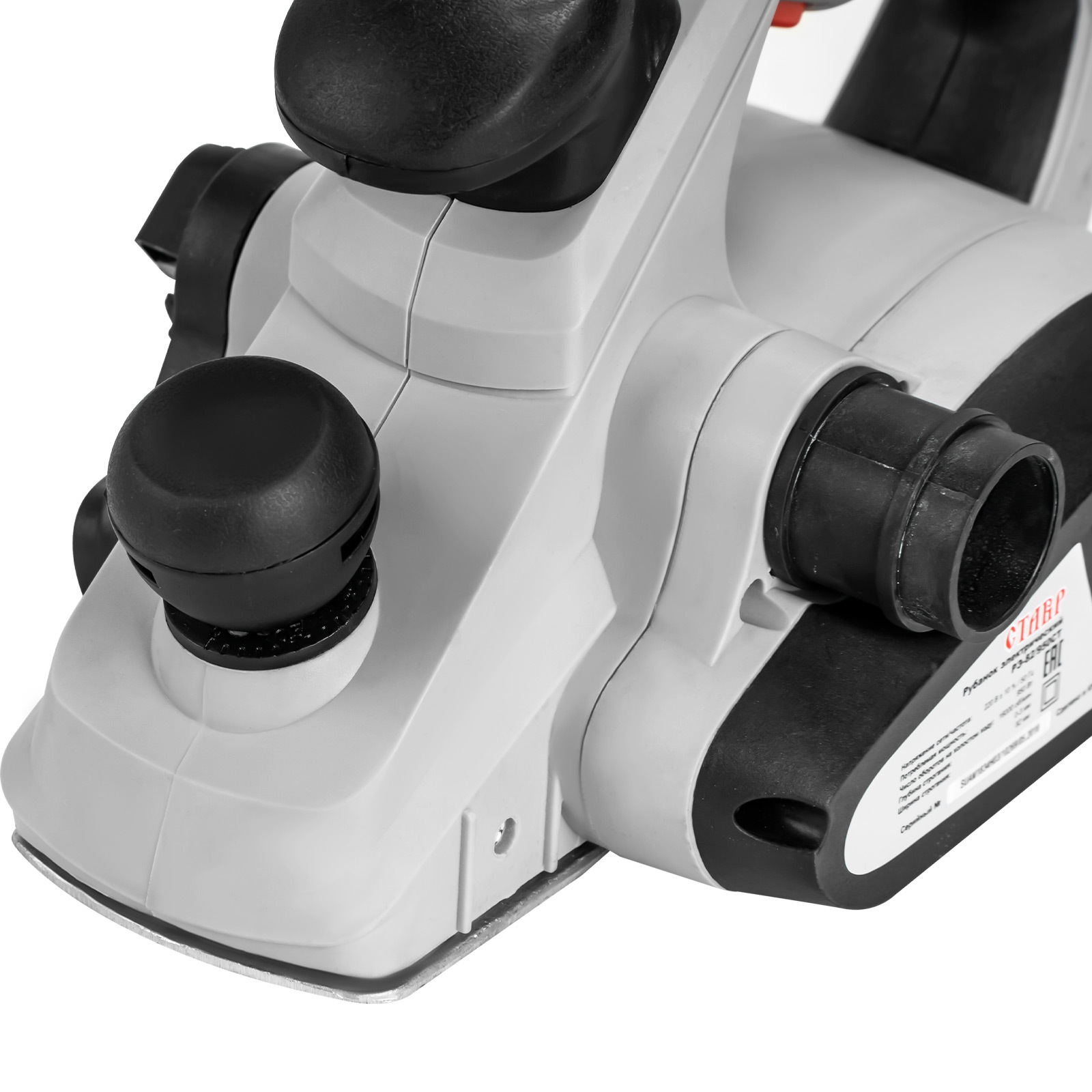 - КОМБИНИРОВАННАЯ РУКОЯТКА: Одновременно выполняет функции дополнительной рукоятки и регулятора глубины строгания.