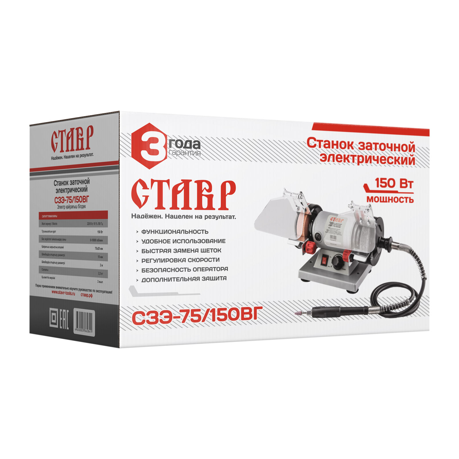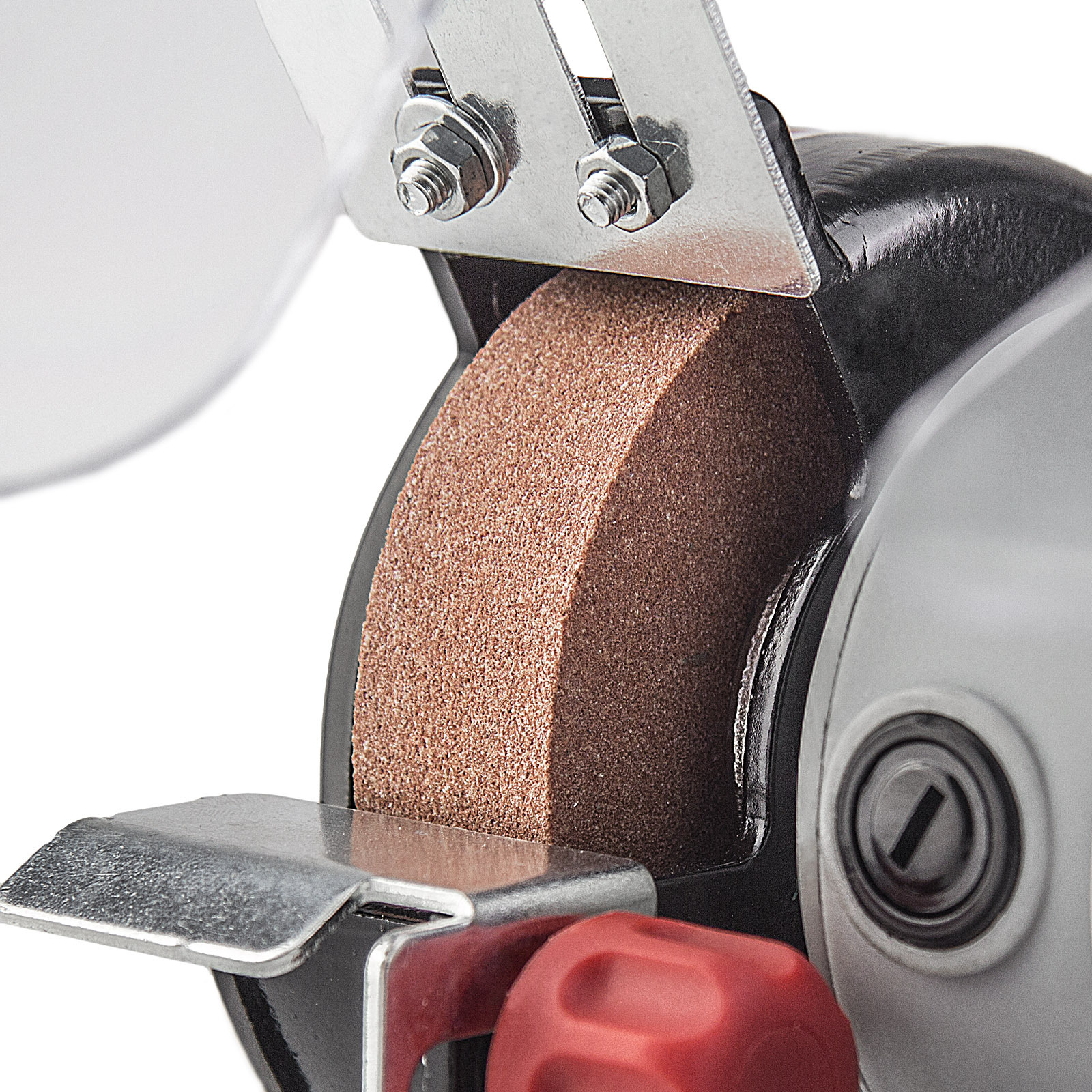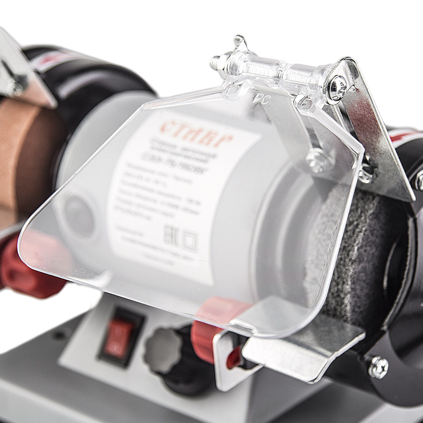 - БЕЗОПАСНОСТЬ ОПЕРАТОРА: Прозрачные экраны на точильных кругах защищают оператора от искр и абразивной пыли.