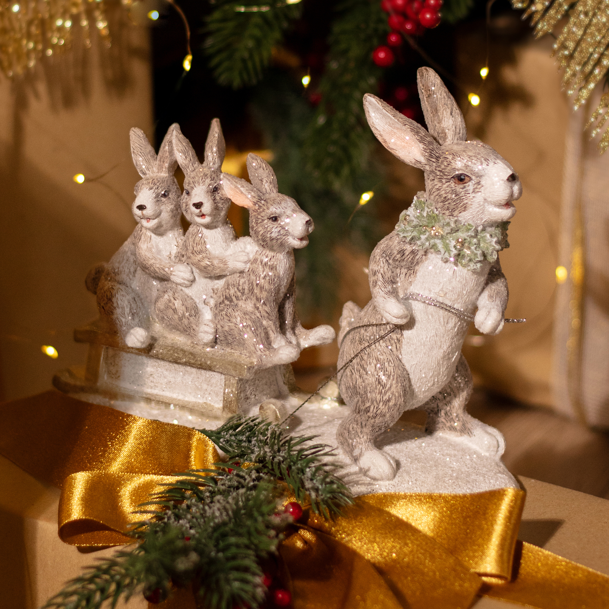 СТАТУЭТКА "КРОЛЬЧИХА С КРОЛЬЧАТАМИ" 24Х8Х16,5 СМ. 162-1319
