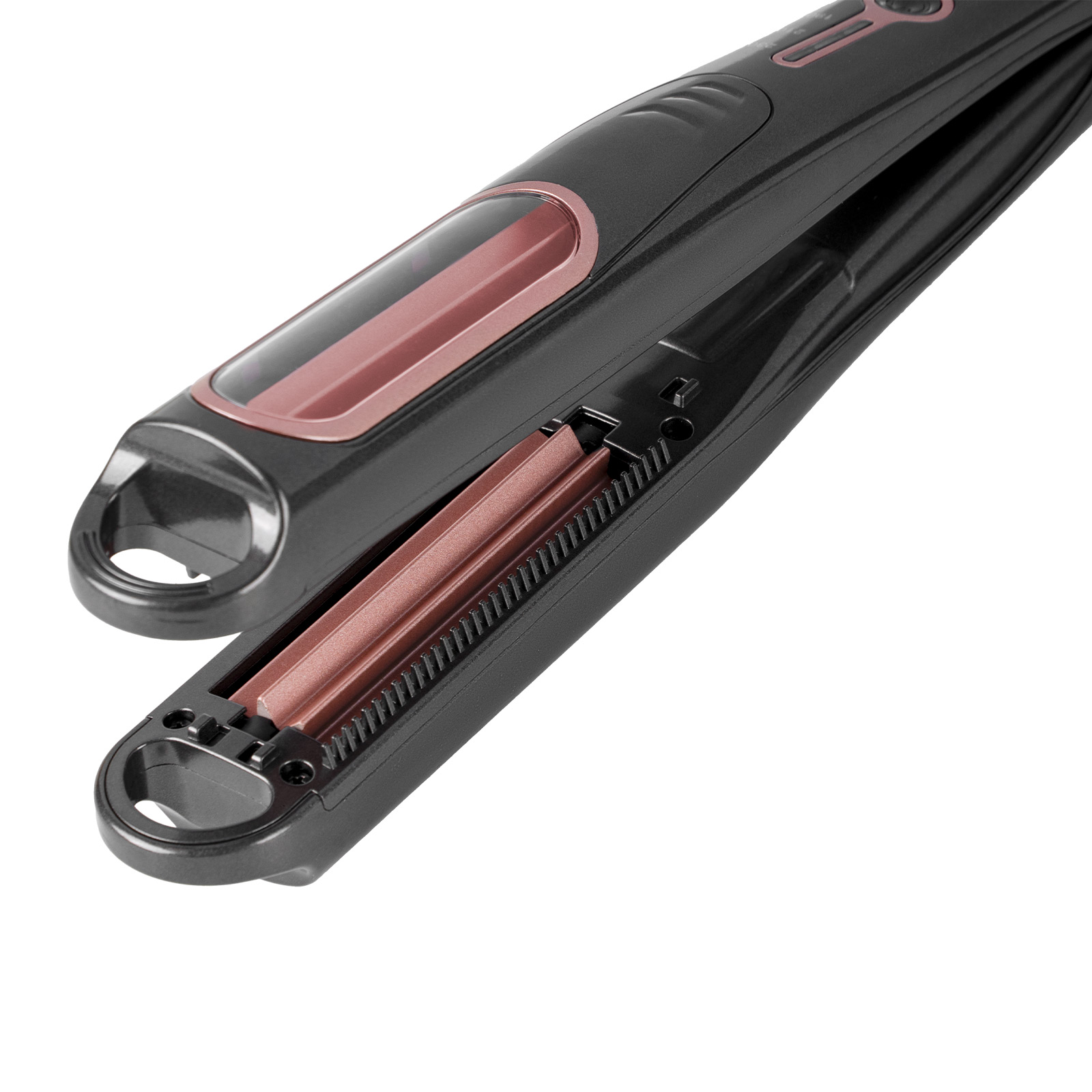 Регулятор температуры предоставляет три режима нагрева — 190°C, 210°C и 230°C, что позволяет подобрать оптимальный режим для любого типа волос. Это делает стайлер идеальным выбором для выпрямления и завивки волос, обеспечивая превосходный результат независимо от густоты или структуры волос.