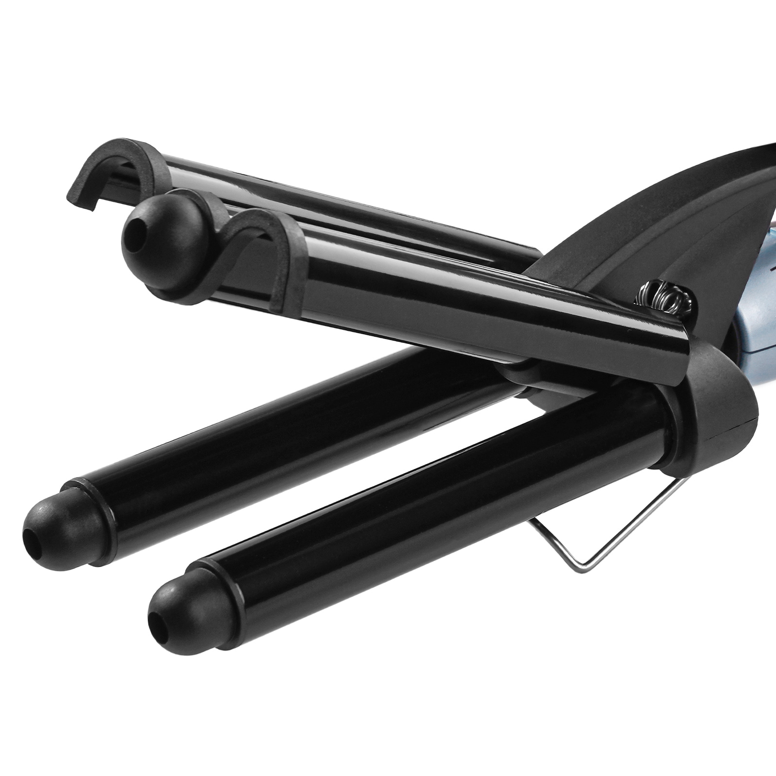 Прибор имеет 3 нагревательных элемента диаметром 22 мм и не требует особых навыков в завивке волос.
