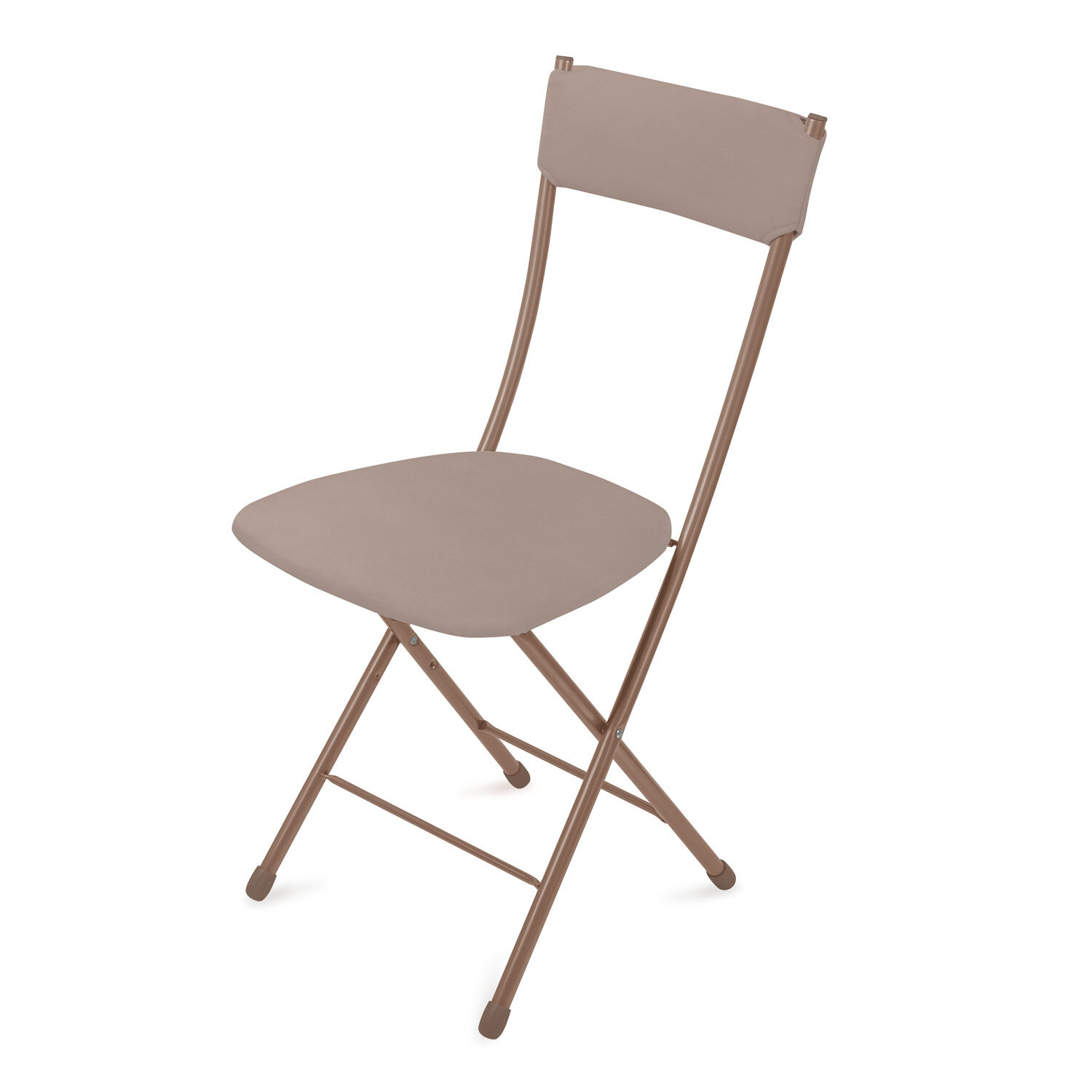 Cкладной стул с мягкими сиденьем и спинкой из фактурной экокожи.