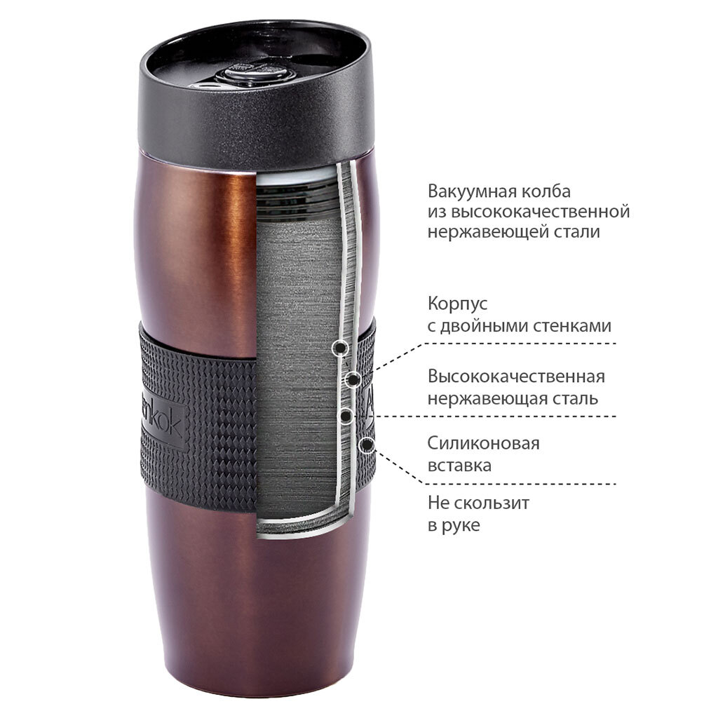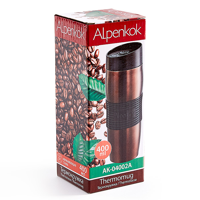 Термокружка вакуумная 400 мл Alpenkok AK-04002A коричневая