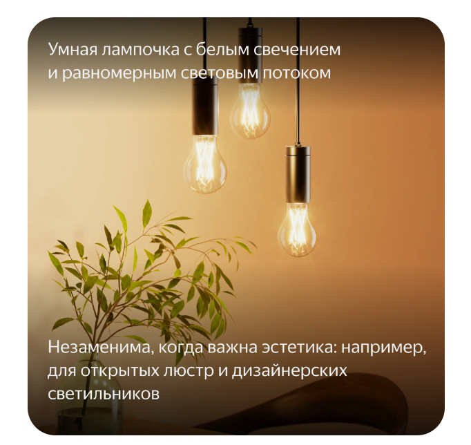 Умная филаментная лампочка Яндекса — отличное решение для тех, кто хочет начать создавать систему умного дома, и для тех, кто хочет расширить его функционал. Замените обычные лампы дома умными светодиодными лампочками Яндекса — и вы увидите, каким разным, удобным и функциональным может быть освещение.