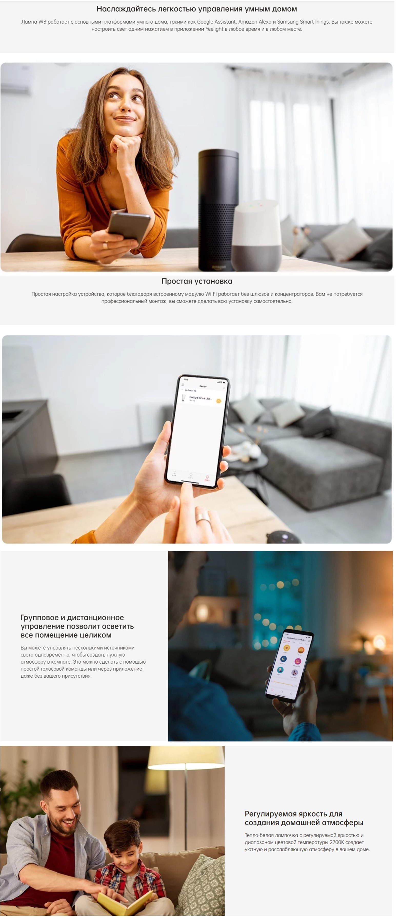 Особенности Управляется голосом, Управление через приложение, Плавное диммирование, Теплый свет