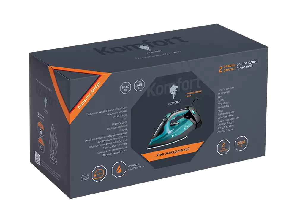 Беспроводной утюг Leonord легко скользит по одежде благодаря керамической подошве. Отпустите шнур, который зацепился, перекрутился или помял ту часть, которую вы уже гладили. Беспроводная технология обеспечивает утюгу полную свободу движений для безупречных результатов. При подключенном шнуре нагрев остается постоянным, а функция подачи пара становится еще более мощной, поэтому вы можете справиться с очень сложными складками и заломами. Утюг имеет большой резервуар для воды объемом 350 мл., который позволит гладить дольше, не наполняя резервуар водой. Представлен в двух цветах бирюзовый и фиолетовый.