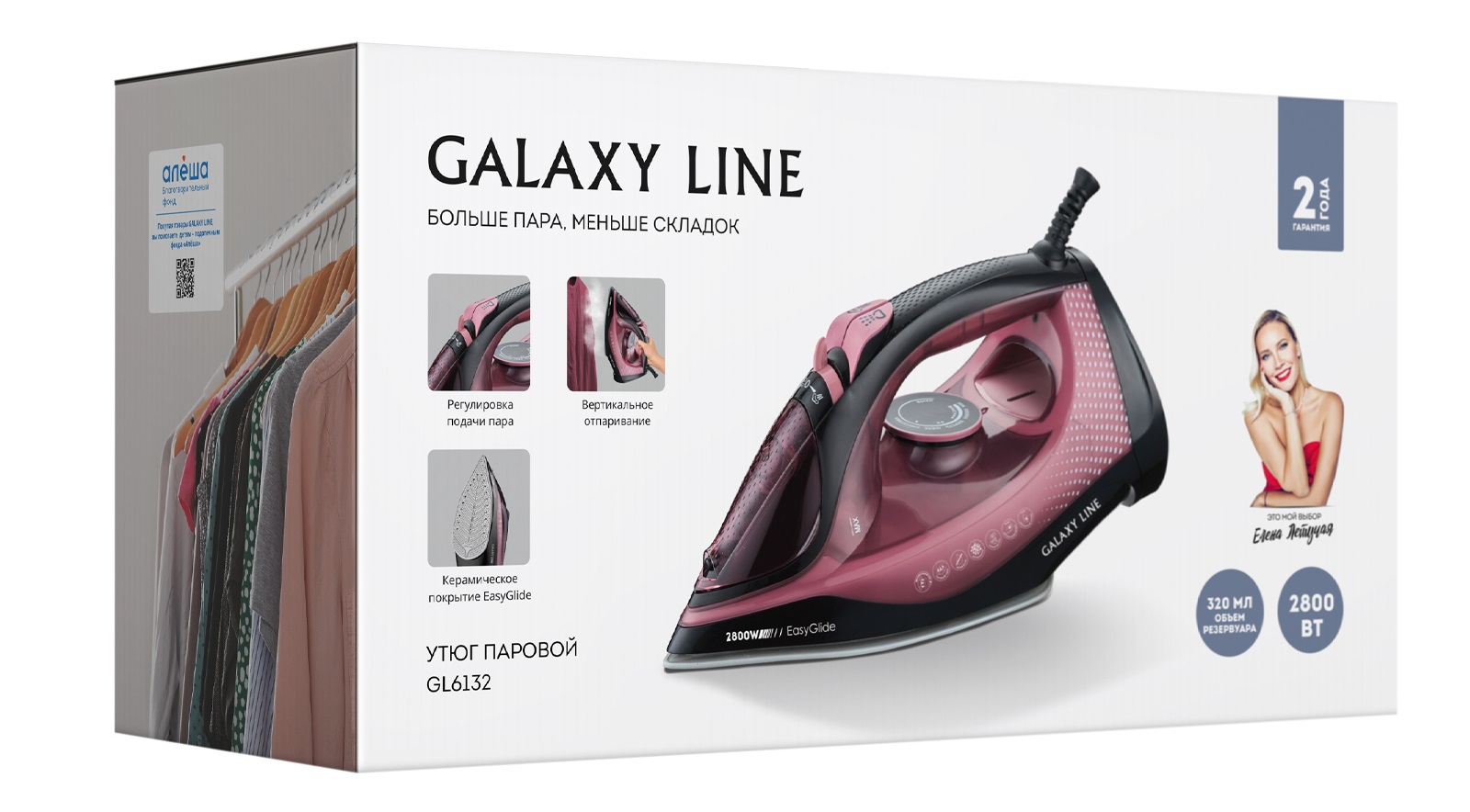 Благодаря паровому утюгу GALAXY LINE глажка различных типов тканей станет быстрой, легкой и приятной задачей даже тогда, когда под рукой нет гладильной доски.