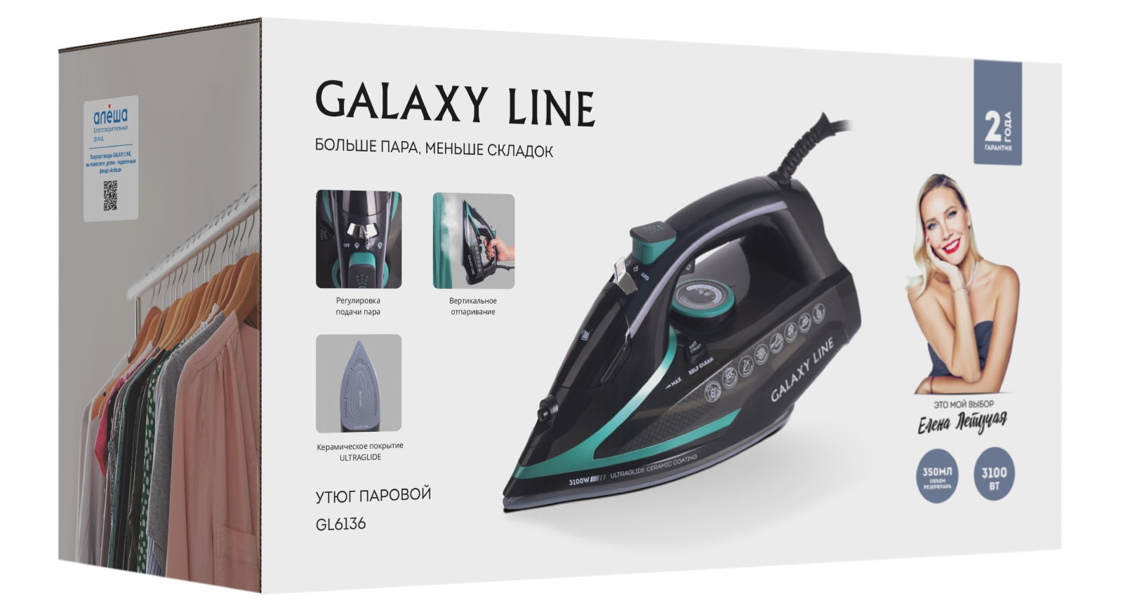 Мощный паровой утюг GALAXY LINE с мощностью 3100 Вт — идеальный выбор для качественного ухода за вашей одеждой. Паровой удар 220 г/мин и постоянная подача пара до 80 г/мин обеспечивают эффективное разглаживание даже самых стойких складок. Функция вертикального отпаривания позволяет быстро и легко освежить одежду прямо на вешалке, а также отпарить шторы, не снимая их с карниза.