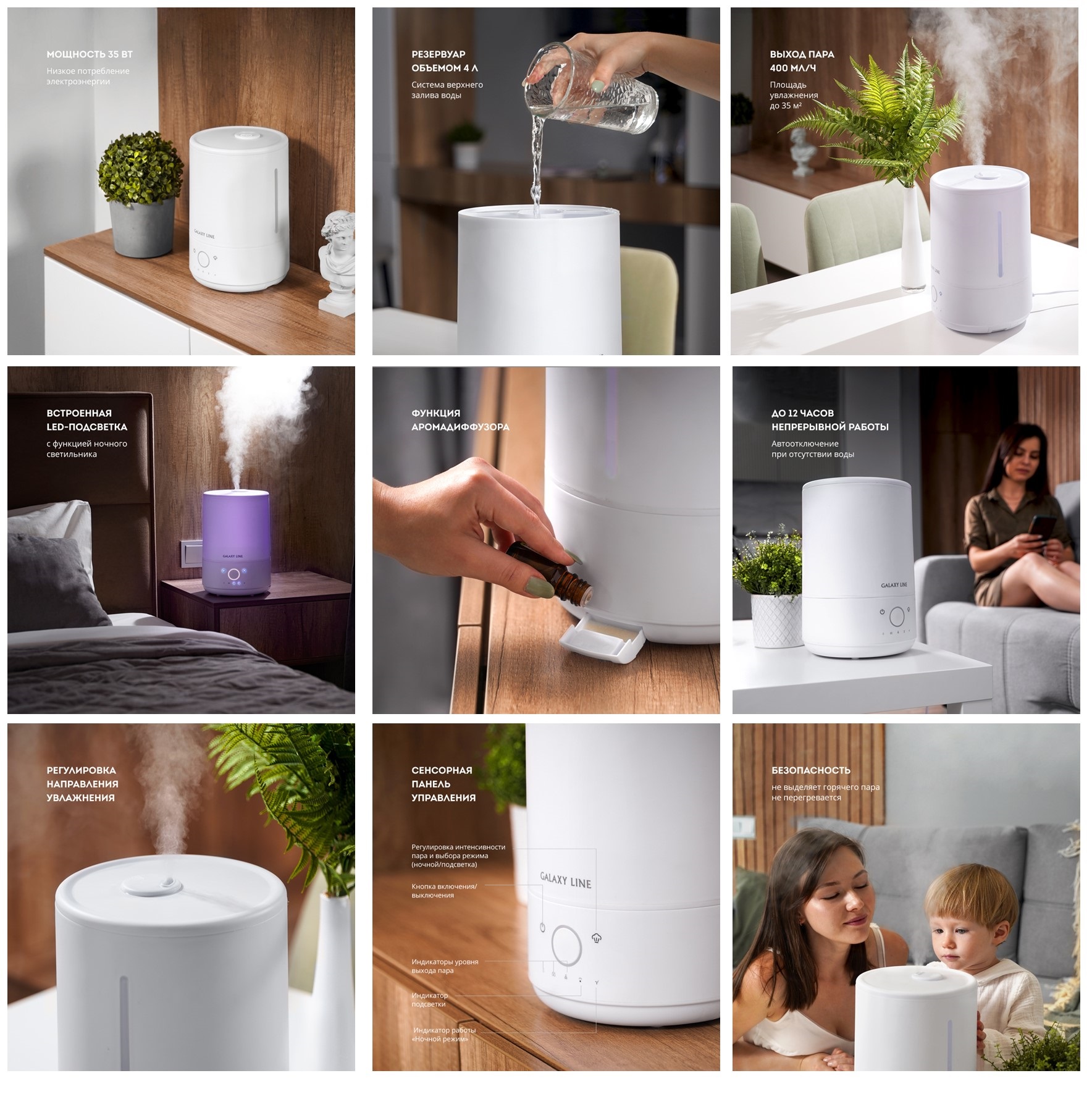 Создайте неповторимый уют, идеальный микроклимат и ощущение свежести с ультразвуковым увлажнителем GALAXY LINE!