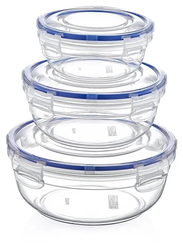 Набор: 400-800-1350 мл Влаго и воздухонепроницаемая крышка позволит вам хранить продукты в 3 раза дольше обычного способа и транспортировать даже жидкие продукты, а стильный дизайн изделий непременно украсит любую сервировку! Можно использовать в микроволновой печи, посудомоечной машине. Продукты под закрытой крышкой надолго сохранят свою свежесть.